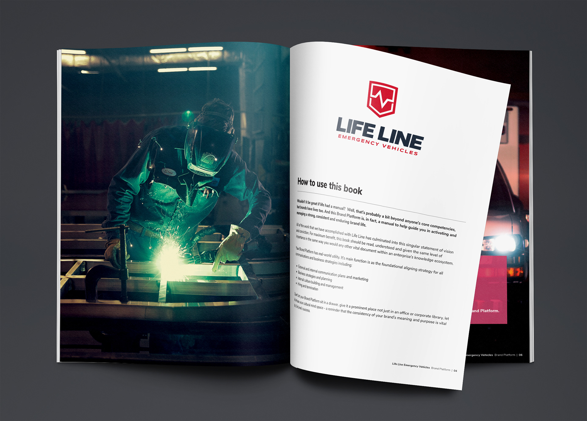 As Creative Director, I led the rebranding of Life Line Emergency Vehicles, guiding the company through a strategic refresh that honored its legacy while elevating its modern identity. I designed a new logo that captured Life Line’s precision craftsmanship and commitment to quality, and developed a comprehensive Brand Platform to clarify their promise, positioning, and personality. During a site visit to the production facility, I photographed the staff and vehicle build process to showcase the authenticity, skill, and pride behind the brand. These images became central to their marketing materials and web presence. The initiative launched with a fully responsive website that highlighted Life Line’s innovative products and company values, creating a cohesive and compelling foundation for future growth.