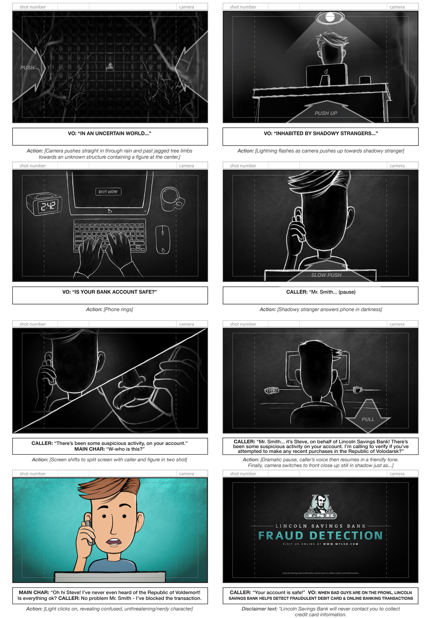 As Senior Art Director, I led the creation of LSB’s Fraud Detection video campaign, designed to raise awareness about common banking threats in a memorable and engaging way. I co-wrote the script, developed the storyboard, and contributed original illustration and animation, collaborating with a 3D modeler to bring the visual world to life. The concept used spooky humor and metaphor to simplify a complex topic while maintaining clarity and trust. I also directed the audio production to ensure the tone matched the playful yet informative narrative. The finished video earned both a Davey Award and a Telly Award and helped position LSB as a proactive and customer-centered financial partner.